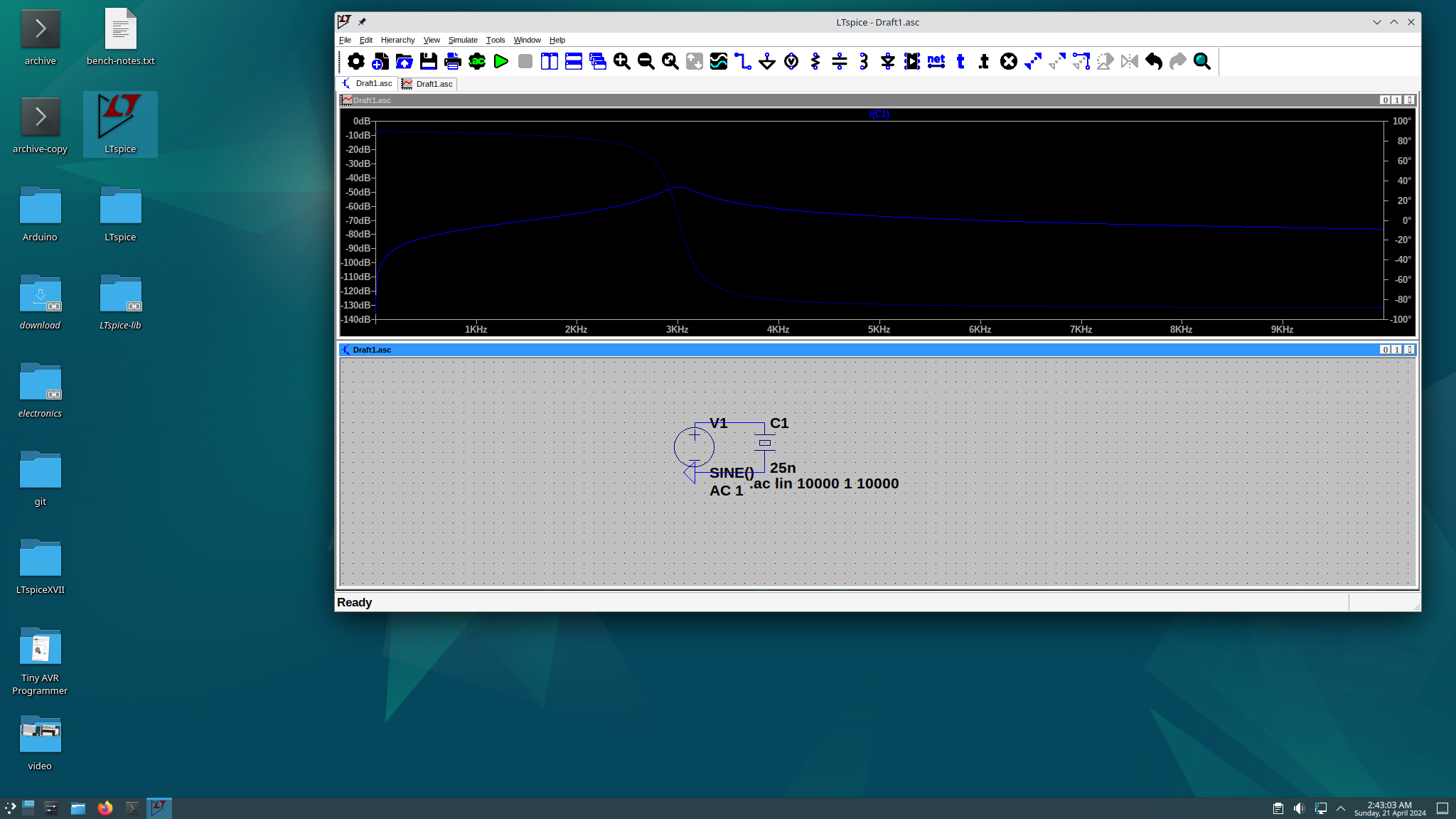 At 3000 Hz, the impedance of the cap and inductor are equal in magnitude but opposite in sign- they sort of a cancel. Since the L and C is in parallel, the combined impedance would go to infinity with no resistance in circuit. 1/Z = 1/z1 + 1/-z1, leads to a Z of infinity and a very peaky response. This doesn't happen due to R's in the circuit though quartz crystals come close with Q's of many thousands. The Q of a resonator is the fractional bandwidth that it is resonate over. It is a also equal to the loss in the resonator per cycle. With no R, Q would be infinite and the bandwidth would be zero and once you tickled the part, it would go forever. Think tuning fork. So if the Q of the resonator is about 10 - this is 300 hz wide 3 db bandwidth. The impedance of the cap is 1/2*pi*f*c= -j2123 ohms. The -j means that its complex, the inductor would have the same impedance but positive- they cancel. To make a Q of 10, add a parallel R of 212 ohms- my 500 was an approximation before knonwing much. You can sweep the circuit in spice and see all the magic. The R is a loss, it can go in parallel with both the L and C or in series with either component but in the loop. What a resonator does is slosh energy back and force between the two reactances. The R is a loss term and it burns some power on each "slosh" so has to be in the loop between the L and C, either parallel to both or more usually lumped with the L or C which is really the case.