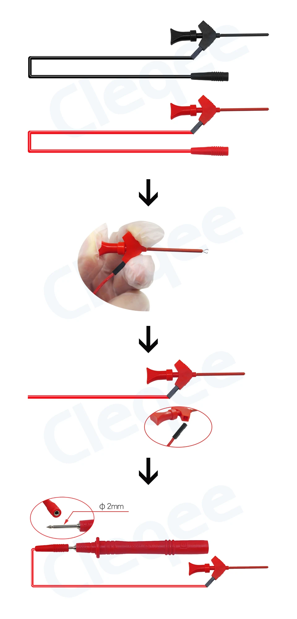 I don't like the weight of a whole multimeter probe hanging off mini or micro grabber/hook test probes. However, as I don't have a multi-channel bench DMM, I don't want dedicated full length test leads with hook/grabber ends as swapping leads just to check some non-grabbable test point is a PITA, and storage space in the DMM case is usually at a premium by the time I've thrown in some alligator clip adaptors.
