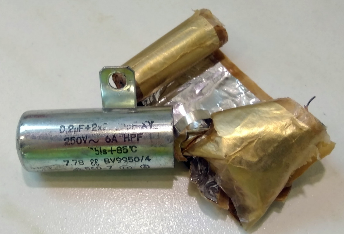 the capacitor with a very strong type of plastic.  The capacitor probably failed open because