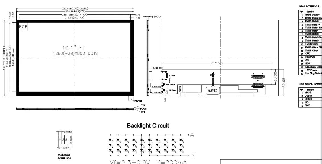 About brightness, since it is a USB module does it presents as a peculiar device? It may have implemented brightness control using the USB communication, either USB to RS232 TTL or some HID device.. If it is serial you could use a microcontroler to read a pot and generate the pwm, signal onto the board.