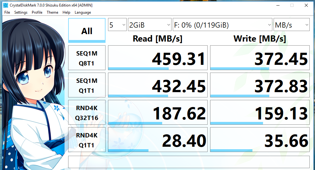 Here is its performance on my Windows PC that is a USB 3.1 Gen 1 not Gen 2 port.