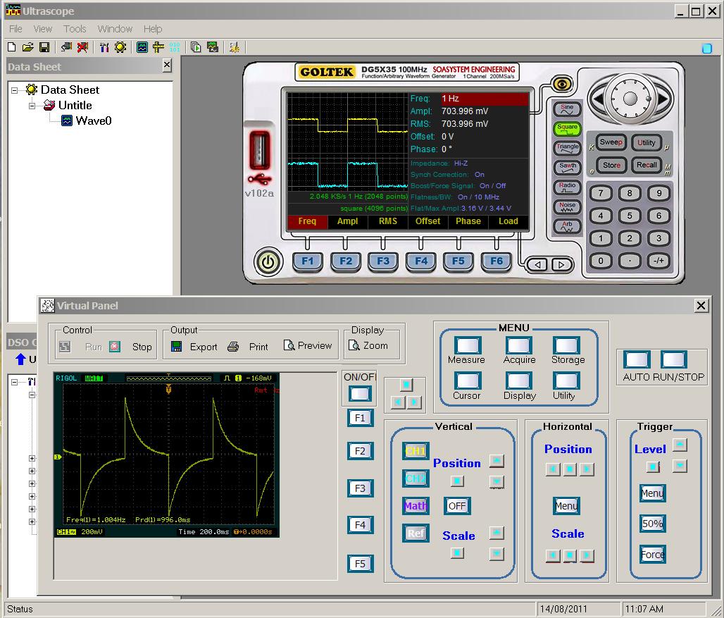 and not to forget, if arbitrary wave replication is your concern (like my current project), you should care to click the "force clock" mode in util menu. and see how the program will try to match the clock and number of points from your csv file to be generated by hantek (marmad's estimation, or law? is the golden rule here!). 2 mode, boost and non boost, further info... pls refer to the help file (click the yellow goltek name topmost the app) or