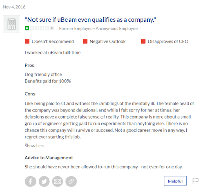 Someone posted a review of their experience of working at uBeam on Glassdoor. It's... interesting.