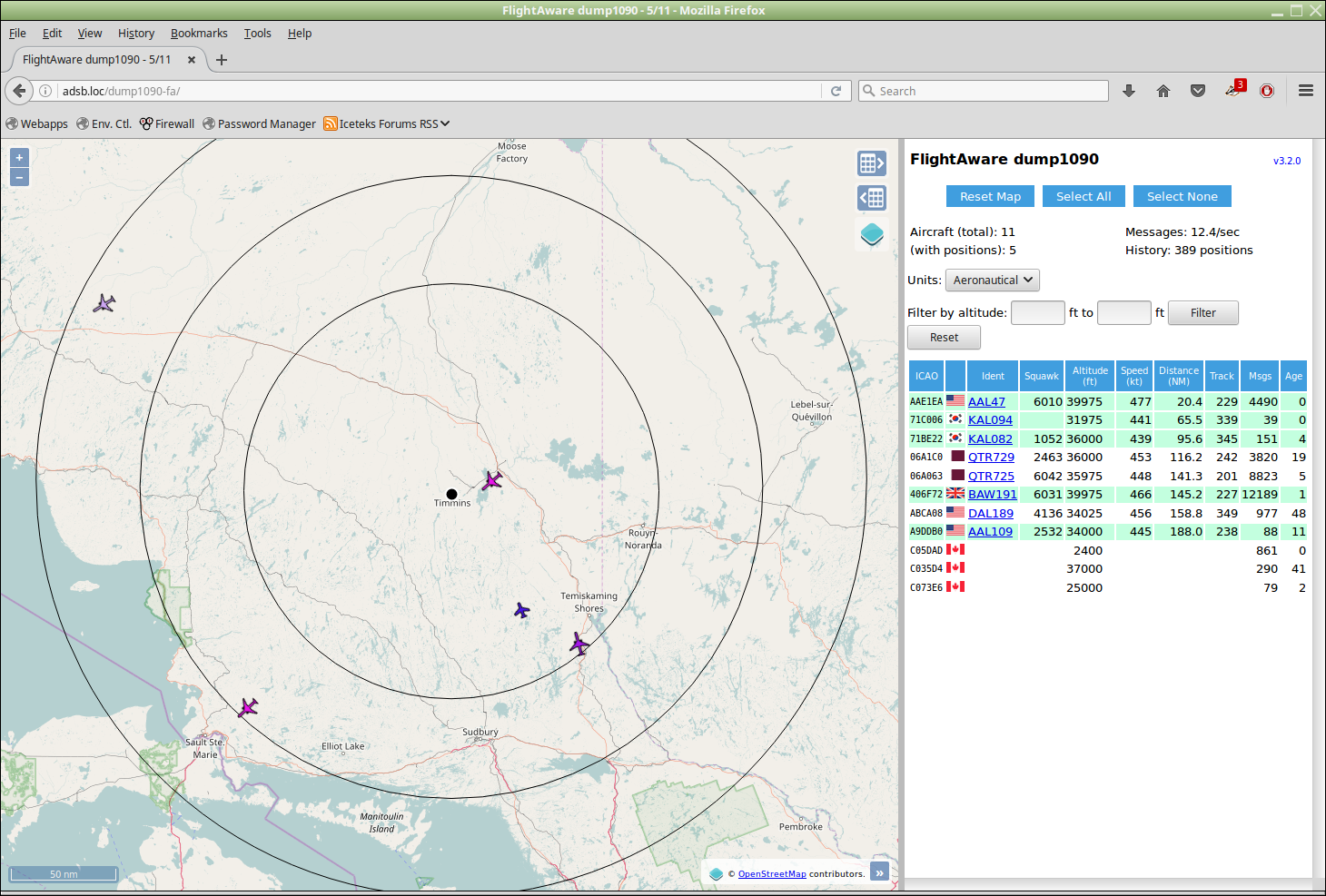 Below, it's showing a few of the aircraft I mentioned above. (You click on one to see it's details & tracking...
