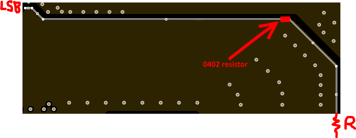 then I have placed a copper shield in this slot (I have cut some shield from a RG-316 cable) so I soldered the shield to the near ground planes.