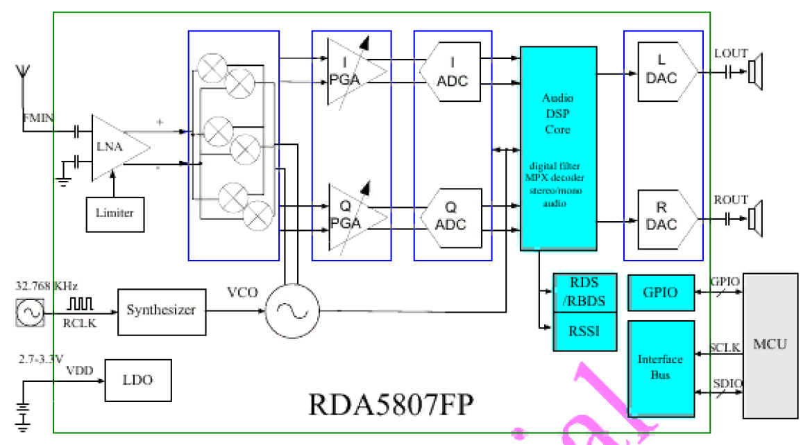 The dimensions of the die are 8,0mm x 7,4mm. The program ROM is located in the upper left corner. The RAM is located in the upper right corner. The slightly smaller memory area at the bottom edge contains the microcode that controls the function blocks of the DSP.