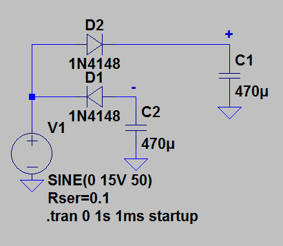Where V1 is 230/12V 3VA transformer, that outputs 15VAC RMS no load.