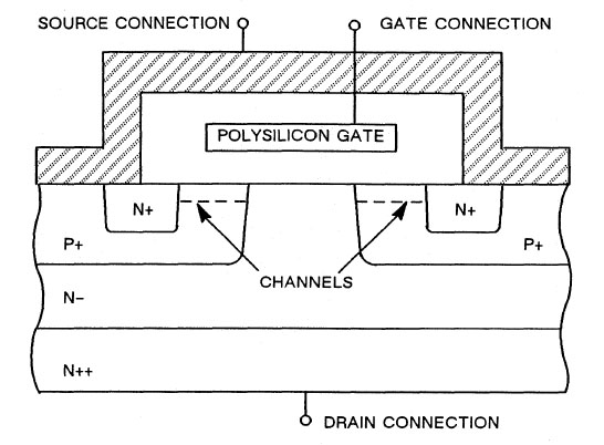 The Siliconix IRFD9120 is a so-called MOSPOWER transistor. In the MOSPOWER Databook, Siliconix shows the typical structure of such a MOSFET, whereby the illustration shows an n-channel MOSFET.