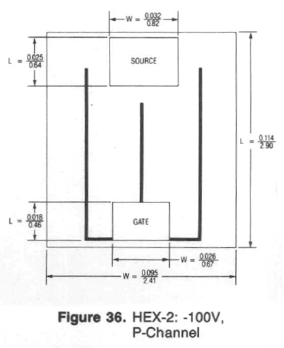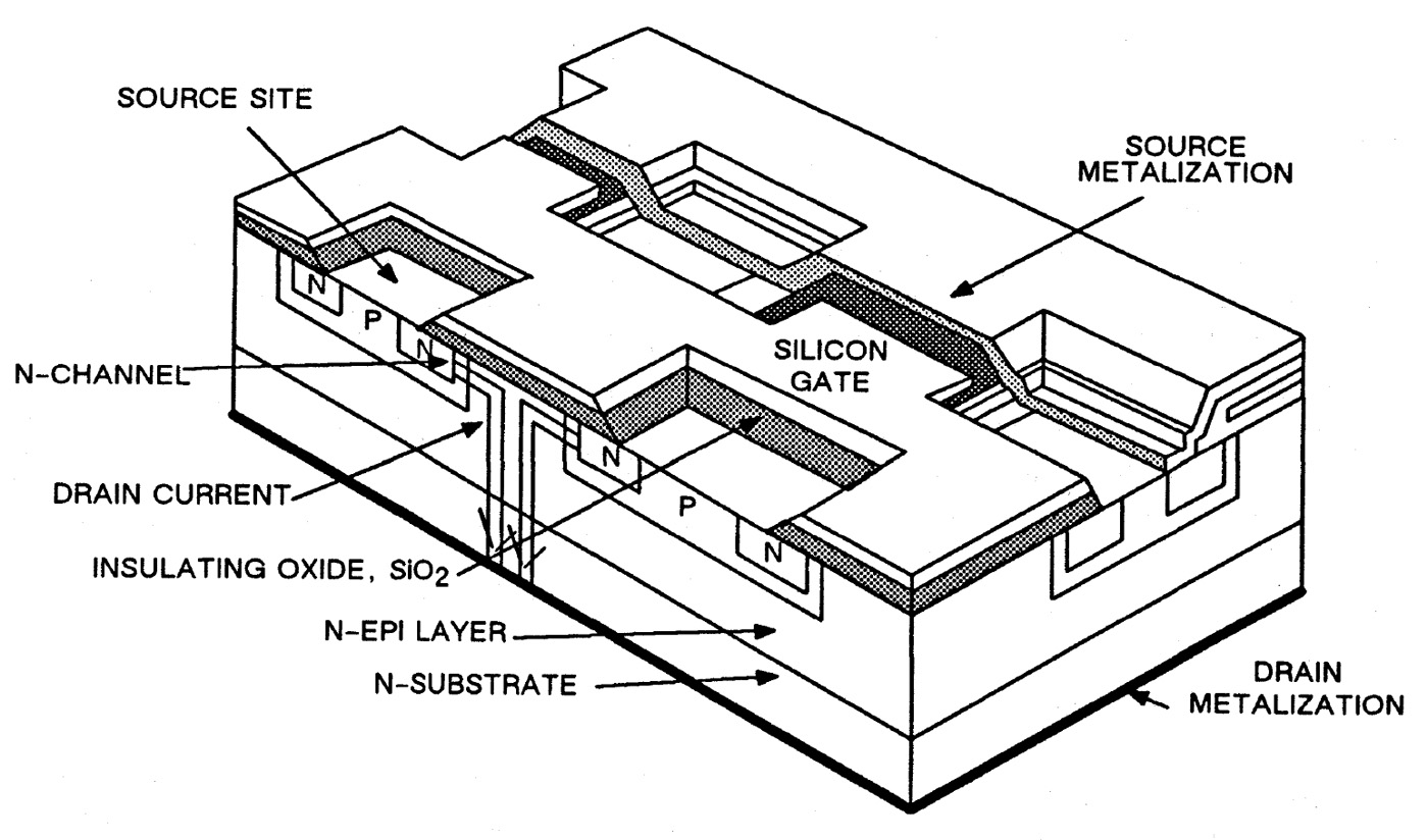 The MOSPOWER Databook also contains the above illustration. The rectangular contacts are clearly visible. The rectangles are formed in the metal layer of these transistors: IRF640 (