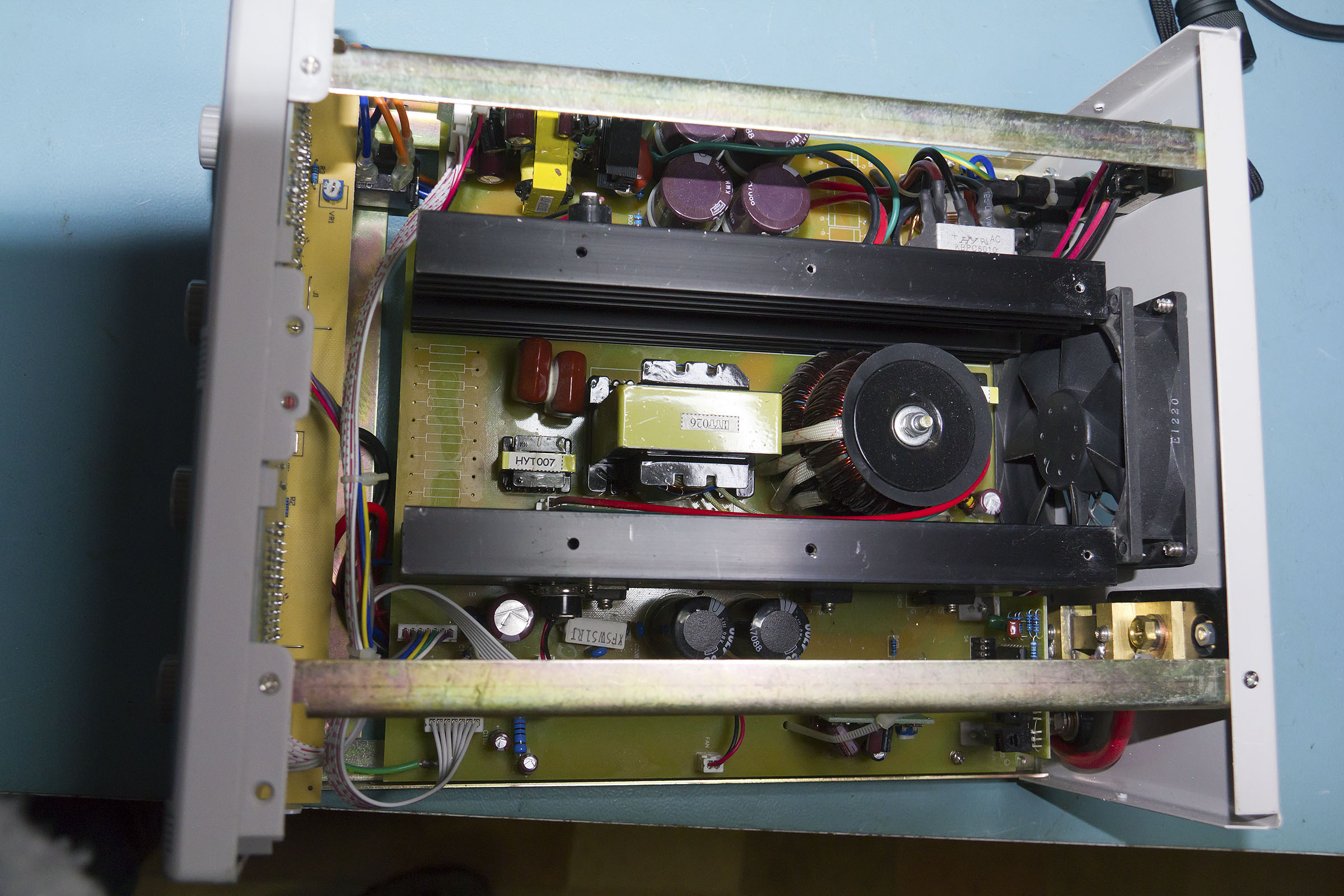 Overall construction is reasonable, primary side components are on one half, then heatsink and magnetics in the middle (where they can be cooled by the fan)