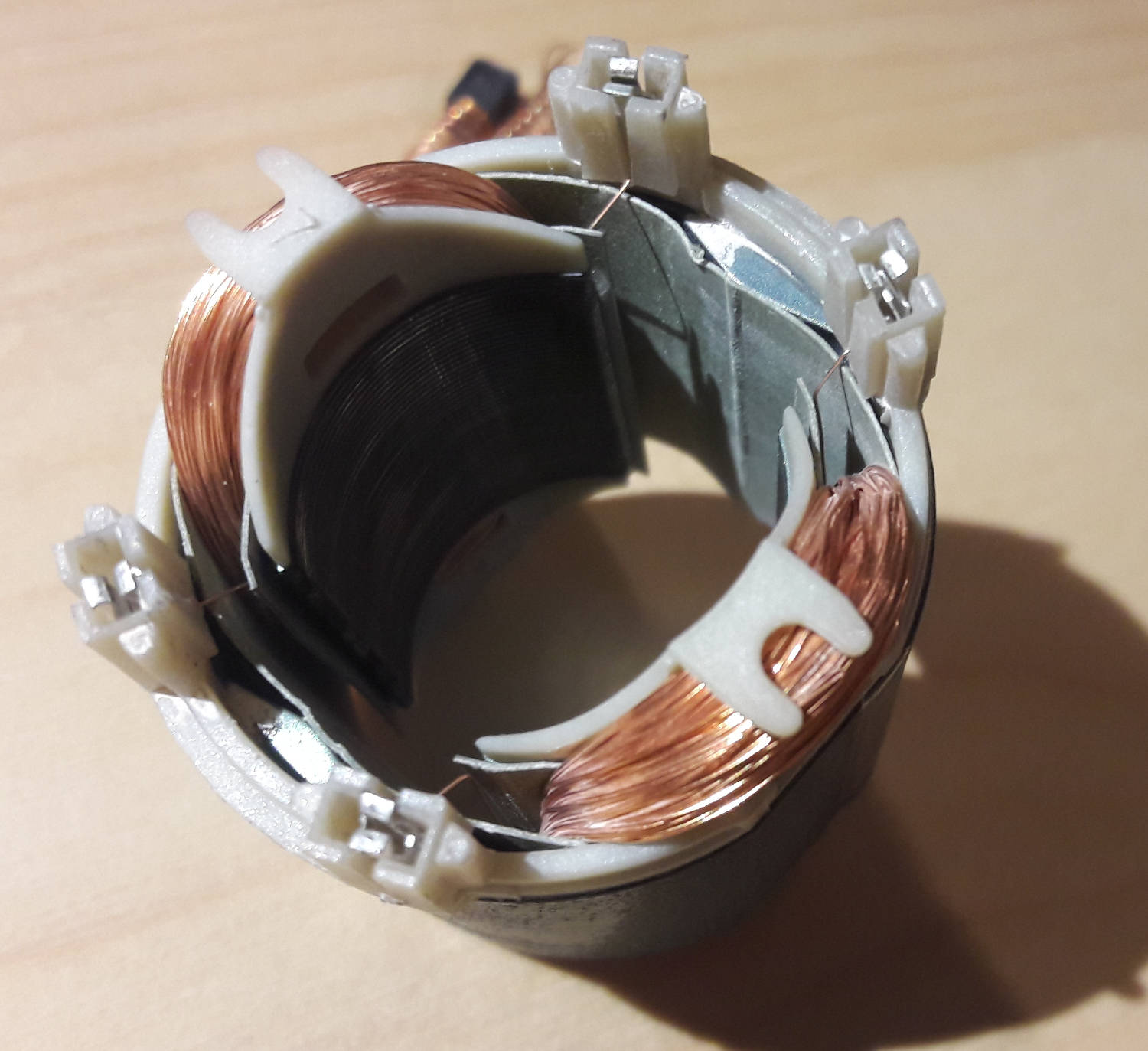 - A common failure on Dremel are the stator wire that break at the connectors, mine are ok because I can measure 23 Ohm between each connectors of the 2 coils.