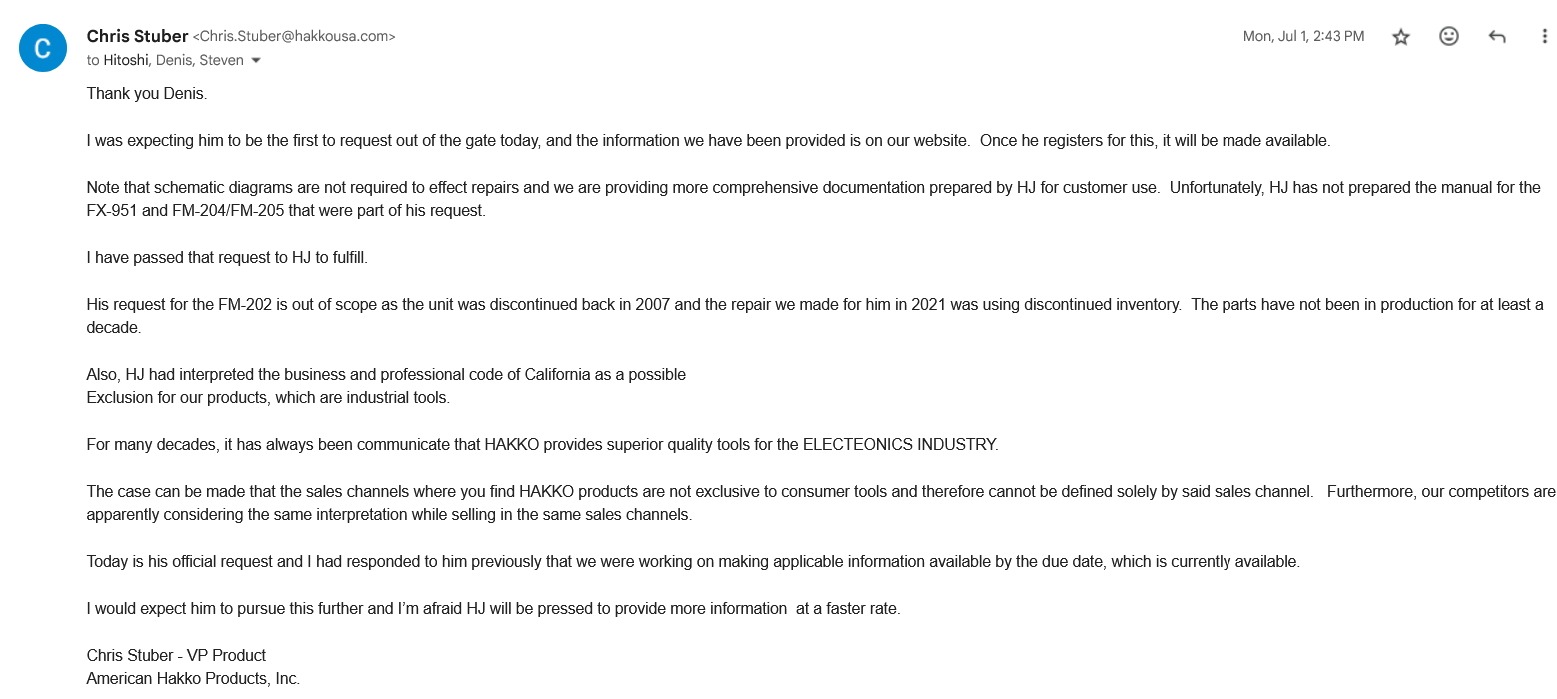 Please review the right to repair law.
