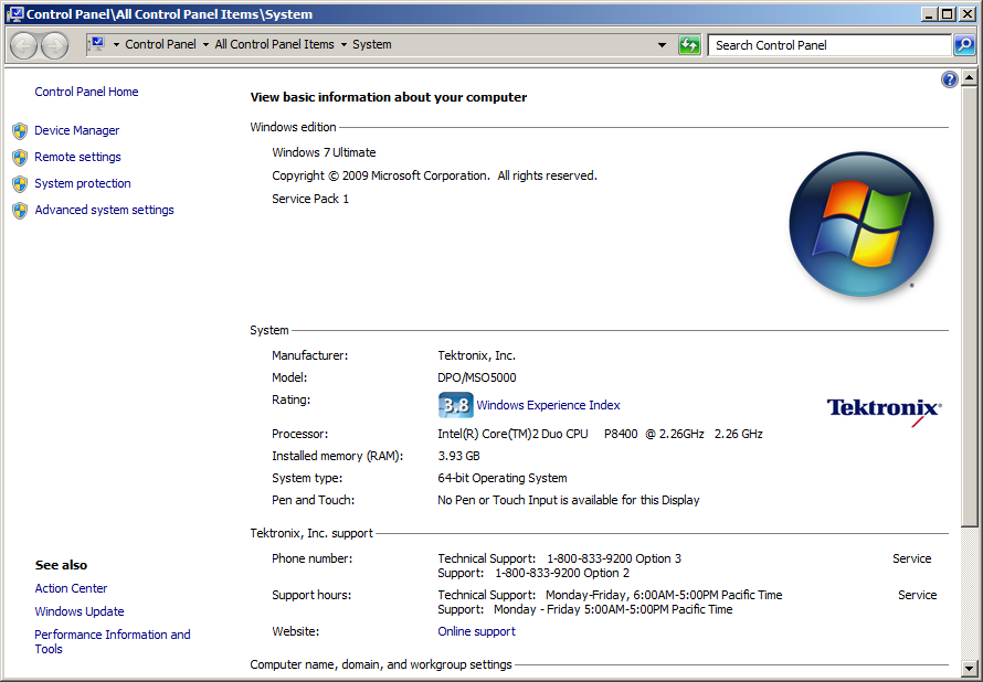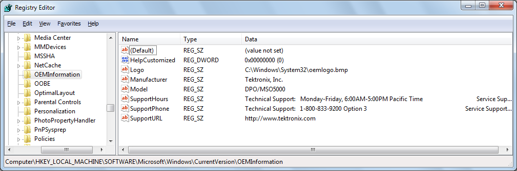 as well as a Tektronix logo and support information. Maybe the installers are checking for this information that would not be present in a vanilla Windows 7 installation?