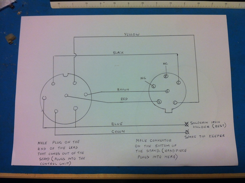 The heater is between 5 and 2, these are connected to heavy cables inside the station, and each goes via a dual mosfet AC switch to either side of the power winding on the transformer. There is a third heavy cable with a dual mosfet switch connected to pin 3 on the binder, this must be the connection to the second heater on the tweezers.
