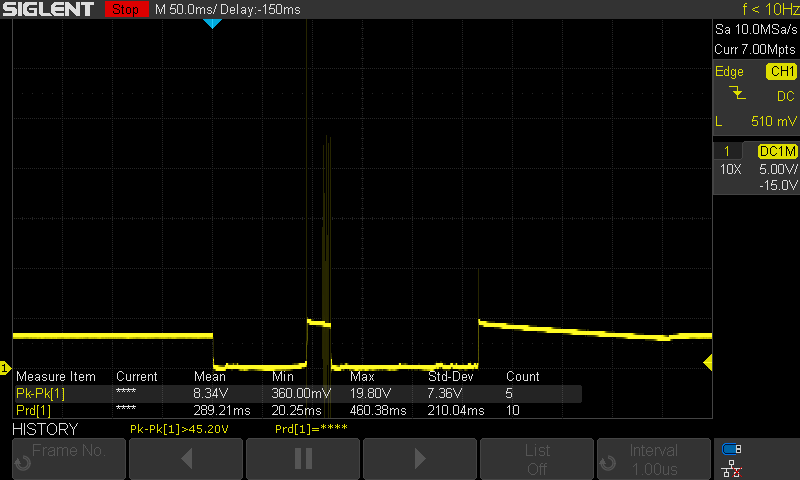 And see the results from the oscilloscope measurement, it doesn't look nice.