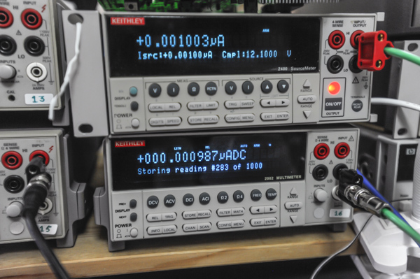 Instead, you should have always selected a longer integration time, NPLC 10 and higher, especially when the measurements were getting more sensitive, to demonstrate the accuracy and stability of this Keithley (!) instrument, especially at low currents, for exapmles.