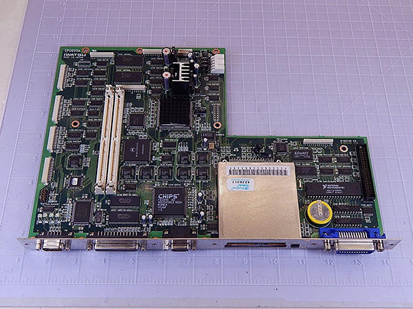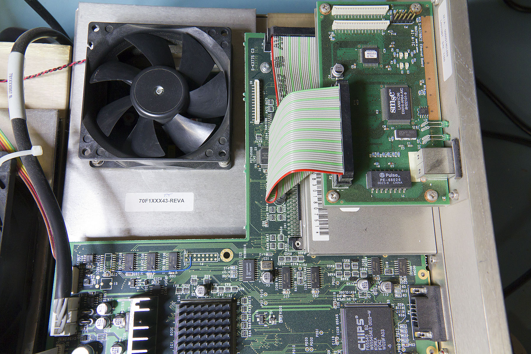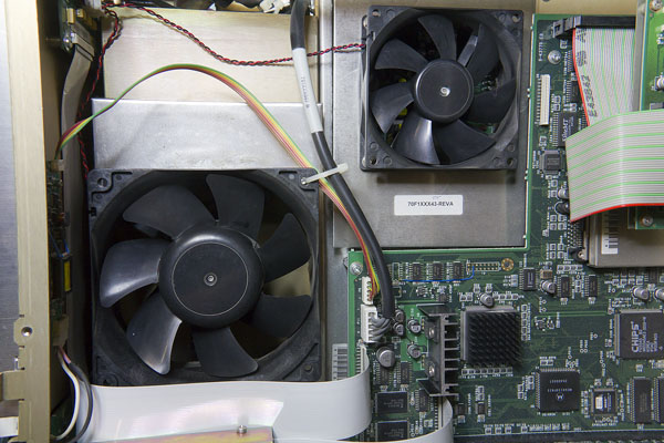 Unfortunately I can't see what the actual fan manufacturer or part numbers are without removing the fans which requires more dismantling. So we can look at the CPU card which is an Iwatsu CPU603e (bit of a clue there as to the processor architecture).