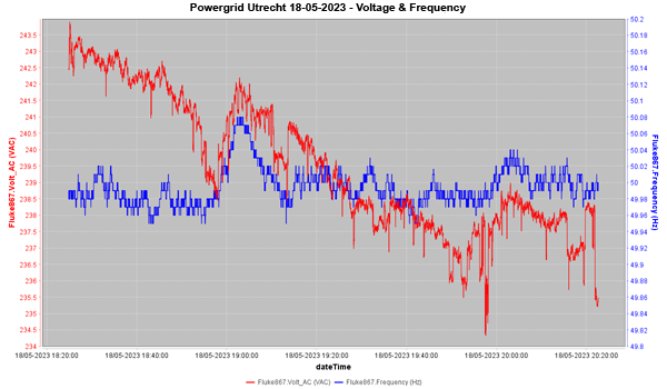 And with it’s opto isolated RS-232 connection, and extremely well isolated mains adapter, it is very well suited for things like monitoring the mains. For such cases it is handy to log Voltage and Frequency with one meter: