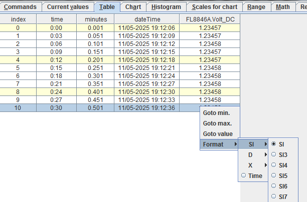 I had the impression that when using “SI”, the number of digits in the table etc. is automatically adapted to the number of digits that is read out of the meter.