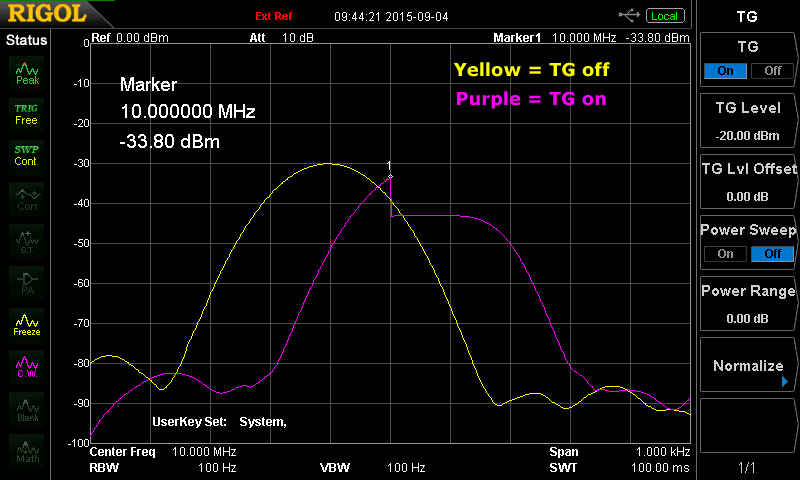 I used a Rigol DG1032z as a source. Gen and DSA815 were both locked to the same 10MHz reference.
