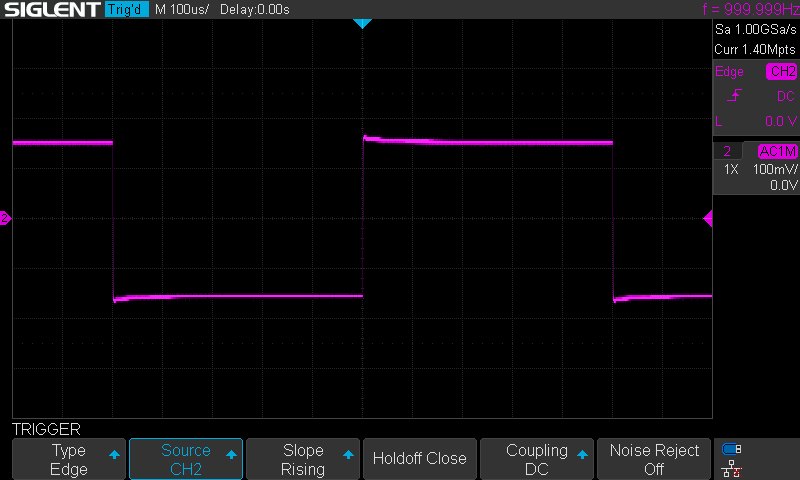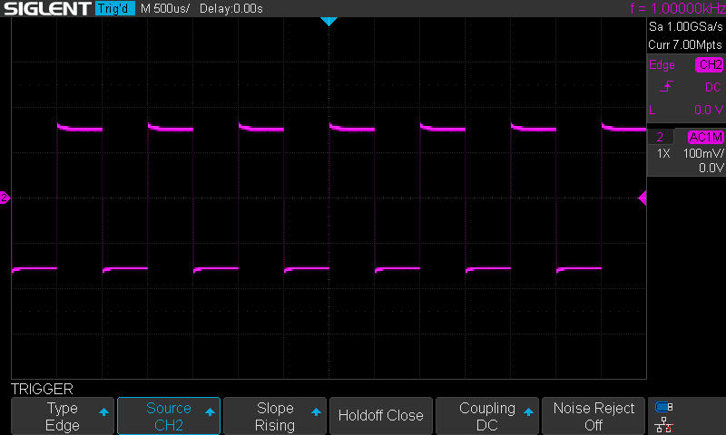 Yeah, for some reason I can't permanently set EDGE trigger for both channels. If I turn on edge for one channel, the other channel trigger is null. And so I must manually do it. Weird.