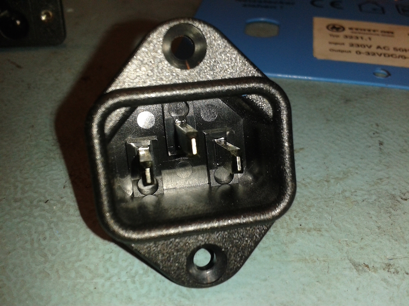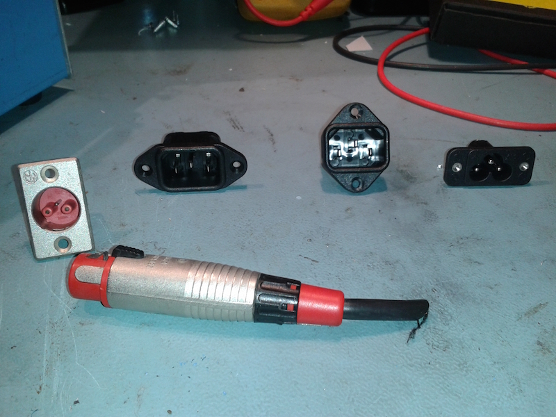 I had a few options to choose from in the IEC 60320 range with regards to the power inlet socket. I had also considered the obsolete XLR-LNE connector due to initial concerns with space. The C6 would work, but C5 leads, although common enough, just aren't as handy as C13 leads, so I eventually figured that I could fit the C14 inlet with the vertical flanges in the space.