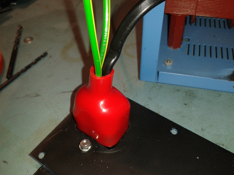 Here I have mounted the C14 receptacle and connected up the wiring and employed an insulating boot to cover the whole lot up.