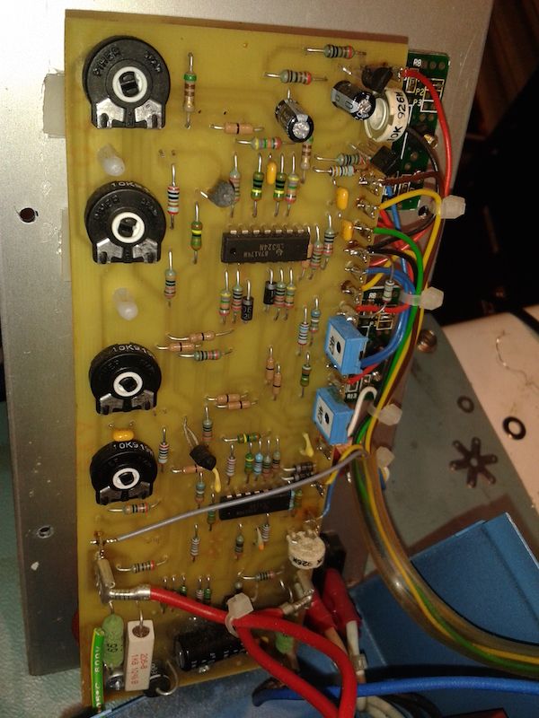 Here is a view of the whole of the PCB mounted vertically behind the front panel.