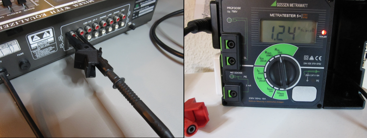 Just as an example: This DJMixer, which is Class 1, does not stand the PE test, thus it is not save to use any longer and needs a check up!