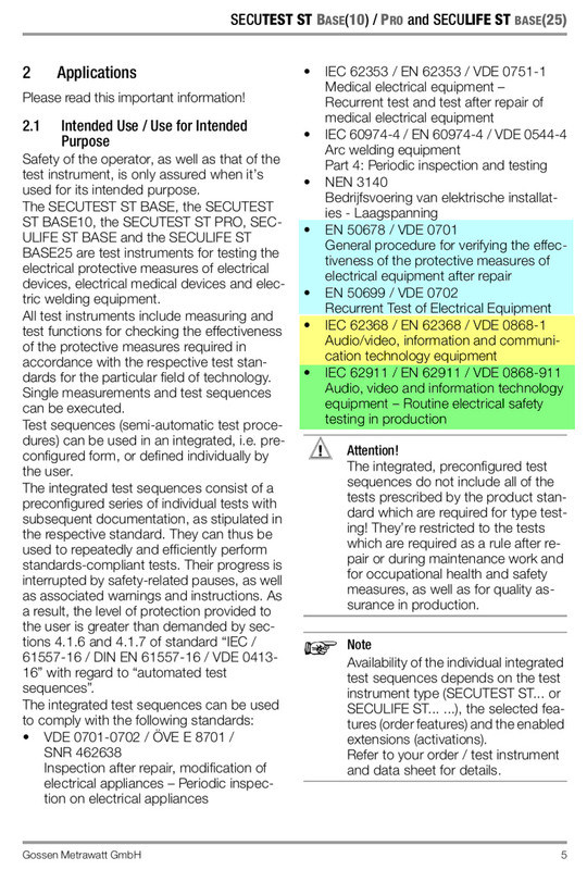 PS and only as a short note: My "Secutest Pro" has a successor called "Secutest ST Pro", with the newest "European Norms" already included, but as I paid for the update "EN50678/EN50699/EN62368/EN62911" to also use automatic sequences, mine is now identical to the ST-Version, so that I only refer to my unit, as there are too many other things to consider with locked and unlocked Firmware-Features as mentioned above to bypass a negative test for example...