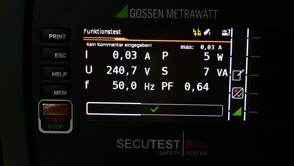 However, the "Green Ring" is the manual test of the Secutest Pro, which can be compared with the "Metratester 5+" itself. No measured value is coloured in "green" or "red", but simply "white" and you have to estimate the result on your own or whether you want to test any further...