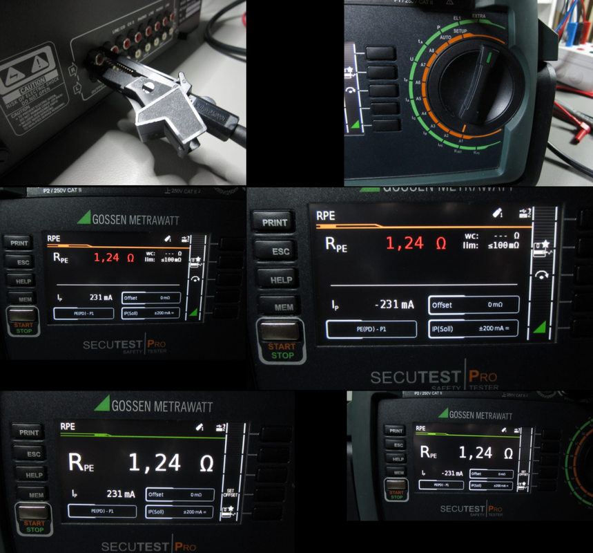 The Secutest Pro gives you two possibilities: The "Red Ring" is for one of several automatic test sequences such as the EN62368 for instance with saved limits, here: less than 100mOhm. When the result is above the limit and therefore not shown in green but red, you have to abort the test and cannot go any further (if you want to pay an extra sum, GMC sells you the ability to bypass this, to go any further). I could change the limit, to bypass this, but does not want to, as it is not save and correct to do so...